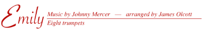 Arranged for 2 piccolo trumpets in B-flat and 6 B-flat trumpets. A very pretty and lush ballad done in a legato, fluid, vocal style. Balance, blend, phrasing, and style are key elements. A beautiful change-of-pace for any concert. One of those unexpected show stoppers.