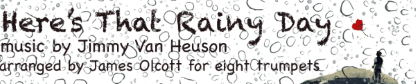 Simple yet very effective arrangement akin to Dee Barton's famous arrangement for the Kenton band. Slow all the way, the piece is thick and lush. There is a little solo space at the very end of the piece. Great change-of-pace on any concert.